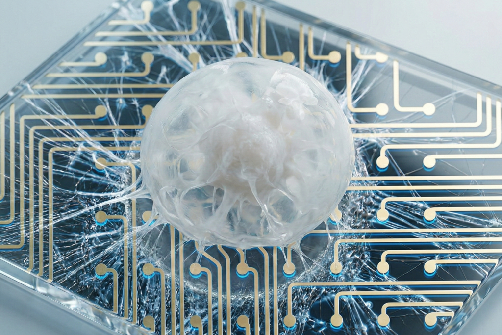 By combining neural organoids with high-performance 3D microelectrode platforms (MEAs) we create physiologically relevant in vitro systems. The result: hybrid bioelectronic platforms that allow for real-time electrophysiological monitoring and serve as a tool for predictive analysis that can be used for neurological disease modelling, high-throughput drug evaluation, and validation of bioelectronic devices prior to in vivo studies.